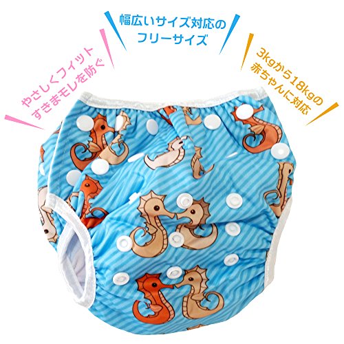 ベビーの水遊びにスイムパンツ ★赤ちゃんの水あそびに!洗って使えるので紙パンツよりとっても経済的でかわいいので大人気 (Seahorse Blue)