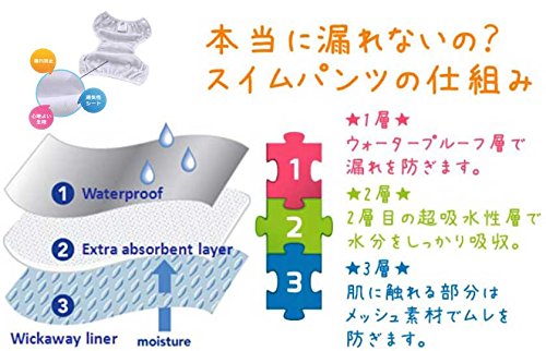 【注意】スイムパンツはとっさのうんち(固形)の漏れを防ぐためのもので尿やゆるめのうんちの流れだしを完全に防げるものではありません。
