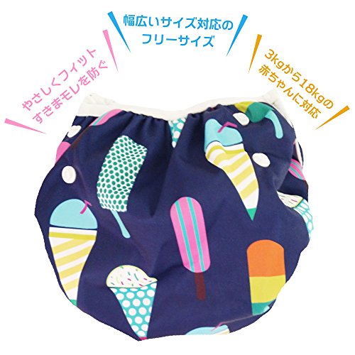 ベビーの水遊びにスイムパンツ ★赤ちゃんの水あそびに!洗って使えるので紙パンツよりとっても経済的でかわいいので大人気 (Navy Ice creams)