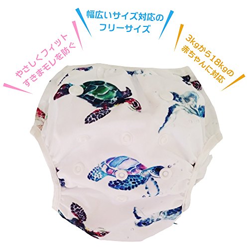 ベビーの水遊びにスイムパンツ ★赤ちゃんの水あそびに!洗って使えるので紙パンツよりとっても経済的でかわいいので大人気 (White Turtles)