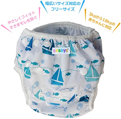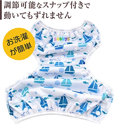 "ベビーの水遊びにスイミングパンツ(ベビー水着)ベビースイミングスクールで大活躍!お庭での 水あそびに!海水浴に!川や公園でも! スナップボタンを使用しているのでどこでも着脱が簡単で、すぐに遊べて着替えも楽々です。 横幅は3段階の大きさに調整でき、フロント部分もスナップボタンがついていて大きさを調整できるため、多くの体型の赤ちゃんに対応します。軽い伸縮素材で赤ちゃんは動きやすく、ウエストと足回りのゴム製素材はパンツを体にフィットさせてずれにくくします。洗って何度でも使うことができるので防水紙おむつよりも断然経済的でママにも嬉しい♪ 保育園でも利用されています。 男の子用、女の子用各2種類があります。 【注意】スイムパンツはとっさのうんち(固形)の漏れを防ぐためのもので尿やゆるめのうんちの流出を完全に防げるものではありません。 公共施設によっては使用になれない場所があります。事前に施設管理者にご確認ください。 塩素により長時間使用する場合は色落ちする場合がございます。 おむつカバーとして使用されたい場合は布おむつ等をはいた上からご使用ください。 "
