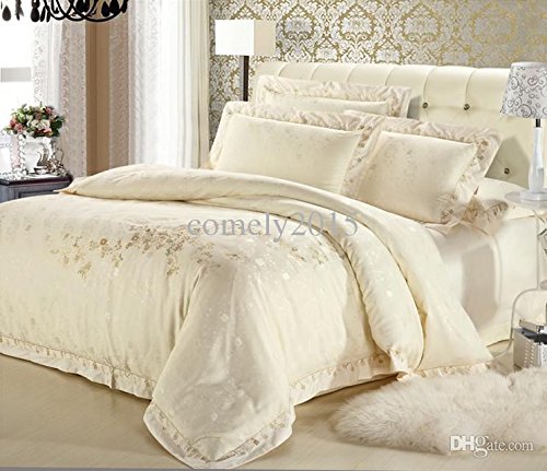Product Name: Wholesale-Luxury White/Silver/Gold Silk Satin Bedspreads Embroidered Bed in a Bag Jacquard Comforter sets Full/Queen/King size bedclothes