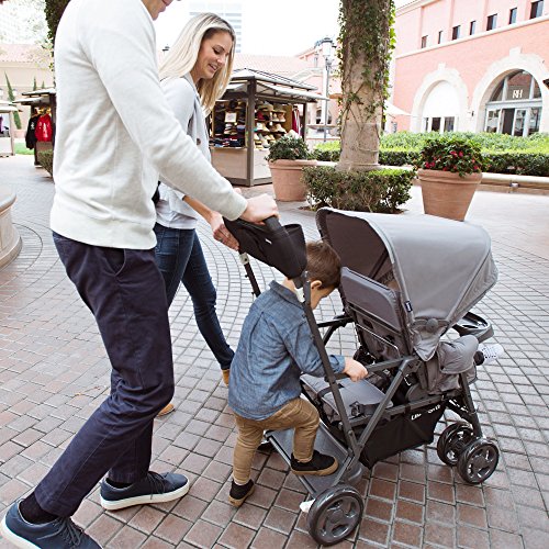■上のお子様を後部座席に、下のお子様を前部座席に乗せることのできる二人乗りベビーカー ■前部座席は3段階(97°、124°、148°)リクライニング ■ドリンクホルダーにはペットボトルが2本収納可能。さらに携帯などが入るポケットが1つ、背面(ママ側)にはファスナー付。ポケットが1つあり、大事なものも収納できます。