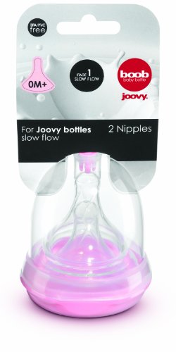 Makes transitioning easy when combining breastfeeding and bottle feeding;Soft touch and shape of nipples best simulates natural breastfeeding;Large diameter base and nipple length allows baby to latch properly;Nipples are baked to strengthen the silicone and to prevent nipple collapse;BPA, PVC and phthalate free;The nipple's unique shape allows you to better combine breast and bottle feeding and the base and nipple length assist your baby in properly latching and suckling.;Nipple fits perfectly on all Joovy boob baby bottles and allow an easy flow of liquid during feeding;Made of silicone, nipples are also baked to give more strength and durability and prevent nipple collapse while remaining soft.;Stage 1 is slow flow for age 0 plus months; 2 count;Ninety-day manufacturer's warranty.