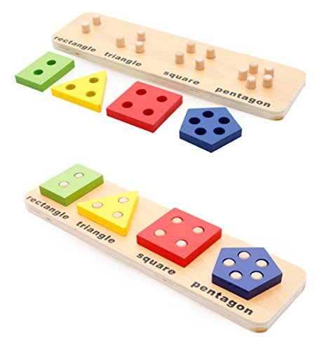 joyeee木製ベビーシェイプ&色認識幾何ボード – スタック&ソートパズルToy # 4 – 完璧なクリスマスギフトIdea