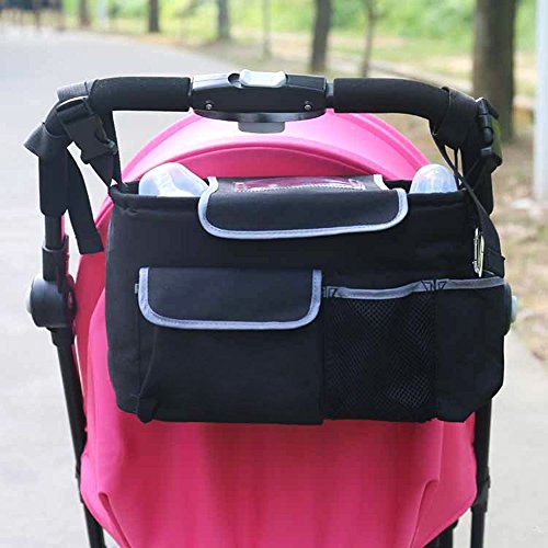 Joyoldelfベビーカー小物入れ ベビーカーオーガナイザー 防水 外出用バッグ 携帯電話ホルダー、ミルクボトル/玩具/おむつ収納 ブラック
