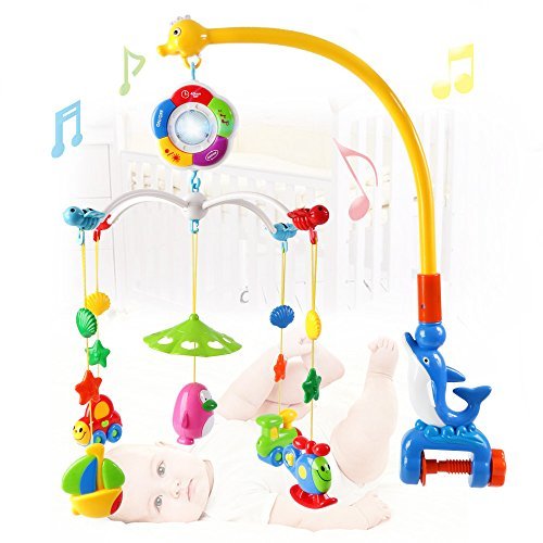 This is a Musical Hanging Rotate Rattle Toy, which is great to install in the bed of for babies and really attract baby attention, bring great fun to them.;Calm your child relax, crib mobile has 4 transport tools (boat, train, airplant and car) ,1 Penguin and rotating musical mobile.;Push the hook of the upper arm with fingers and hang the mobile, assemble the accessories and attach them to the musical mobile, fasten it on the baby bed.;5 function buttons on the musical mobile. When adult press the on button??he musical mobile in 360 degree rotating with light, after 45 minutes, the music will stop automatically.;Material: Plastic, lightweigh. Package size: 52*7.5*40cm. Suitable for baby of 6-36months. Used under parentale guidance.2-in-1 mobile can be transformed into a crib toy as your baby grows.