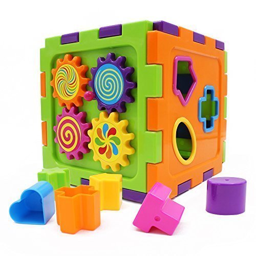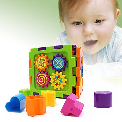 Wishtime Activity Gear Puzzle Baby's First Blocks Shape Sorting Cube [並行輸入品]