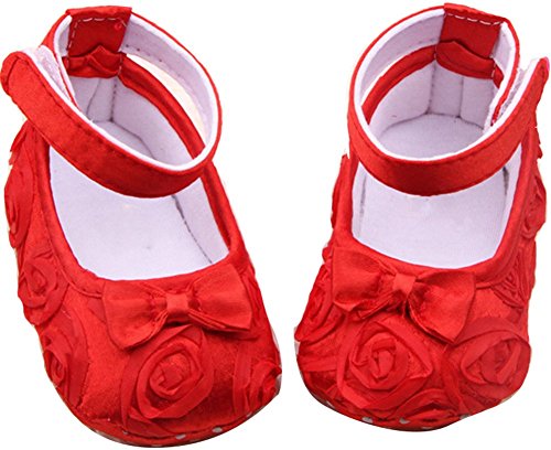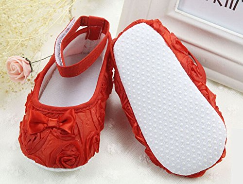 新生児赤ちゃん女の子柔らかいソール滑り止めコットン蝶結び靴Prewalkerスニーカー カラー: レッド