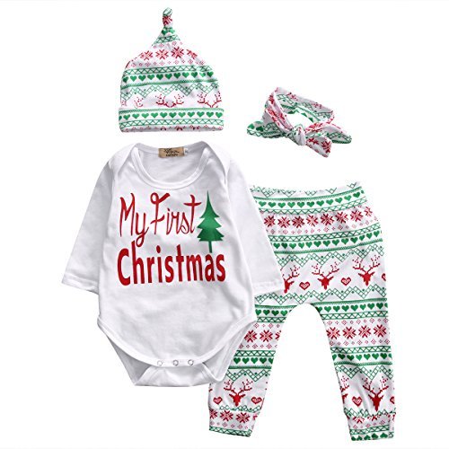juicartベビーガールズクリスマスXmas 4pcs Outfitヘッドバンド+帽子+ロンパース+パンツレギンス US サイズ: L カラー: ホワイト