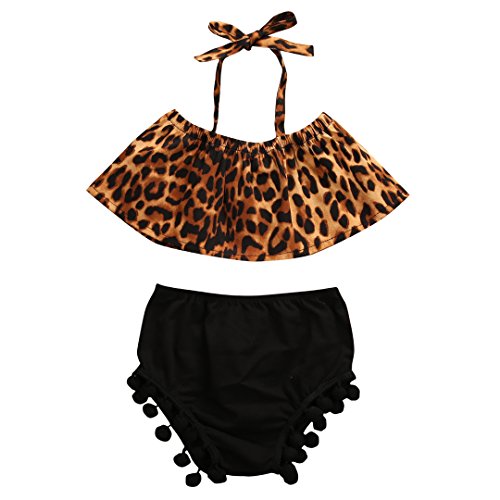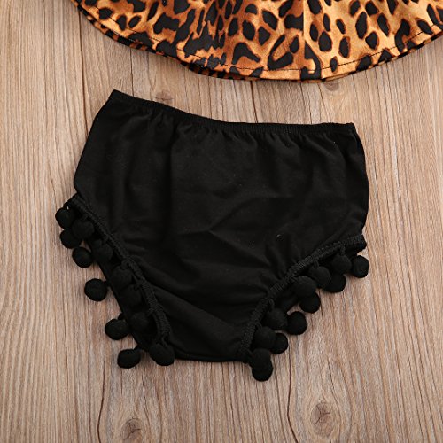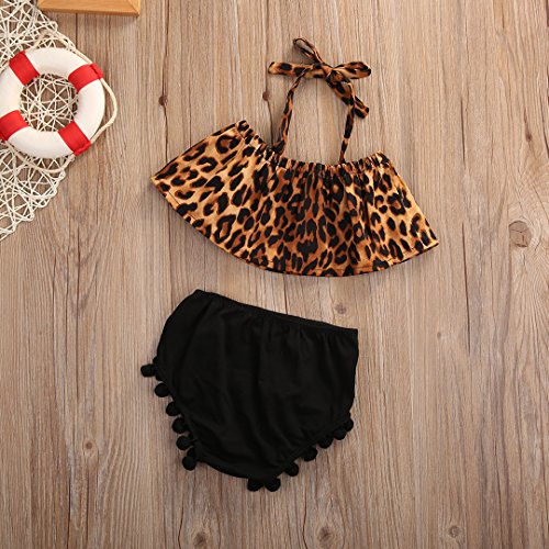 ベビー女の子服セットLeopard Printロータスリーフ襟Off Shoulder Top Pom Shorts カラー: ブラック