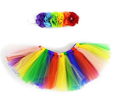 Newborns Layeredネット糸レインボーチュチュスカートカラフルフリルティアードチュールスカート花頭飾りセット All code マルチカラー NO