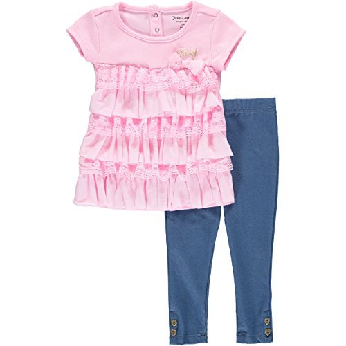 Juicy Coutureベビー女の子用フリル付きレースレギンスセット カラー: ピンク