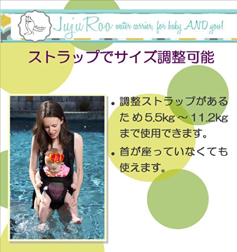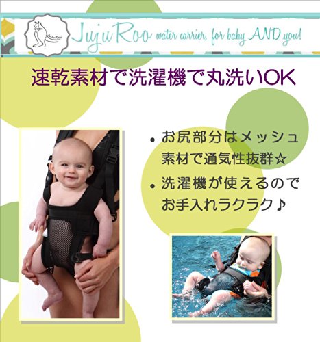 そのままプールにじゃぼん!4人の子どもを持つアメリカのママが考えた、プールやシャワーで使えるだっこひも。ママに密着しながらも、赤ちゃんは手足を自由に動かせる!ママは両手が使えるので、お兄ちゃんお姉ちゃんも一緒に水遊びを楽しめる♪夏の暑い時期には普通の抱っこひもだと赤ちゃんが汗だくなんて事も・・・ジュジュルーは赤ちゃんのお尻部分がメッシュ素材になっているので通気性がよく蒸れにくい!肩ひも部分はウェットスーツにも使われるネオプレン素材で柔らかく、幅広だから肩への負担を軽減します。胸とウエスト部分のストラップでサイズ調節ができます。