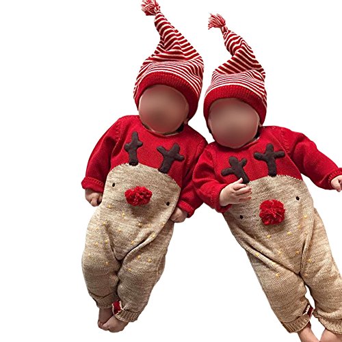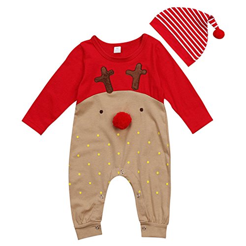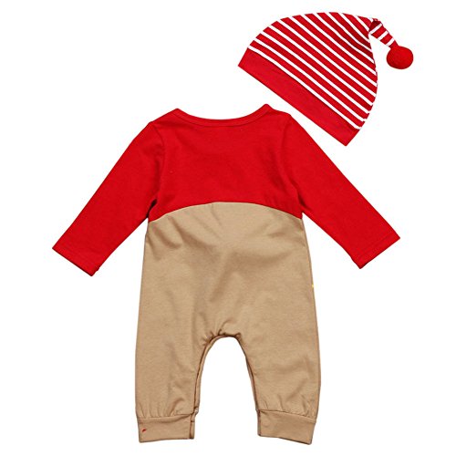 Juleyaing 赤ちゃん クリスマスの服 新生児 男の子 女の子 サンタ 鹿 長袖 ロンパース ジャンプスーツ + ハット2Pcs Sets 子供服 幼児 秋冬 クリスマス 記念日 出産祝い 衣装