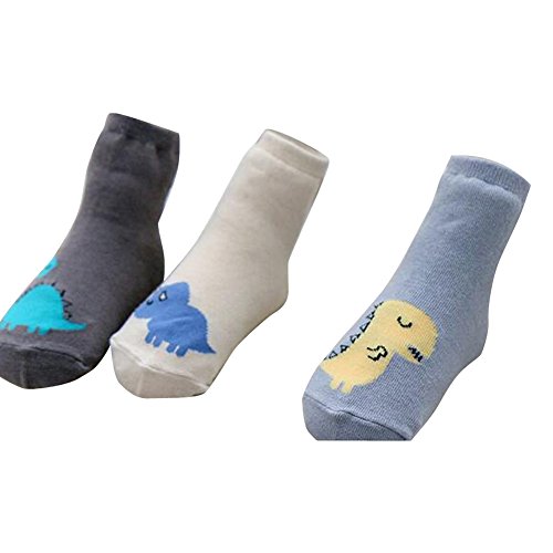 julvie滑り止めCartoon Dinosaurコットンソックス( 3ペア)ユニセックスベビー用0 – 4歳用 US サイズ: S