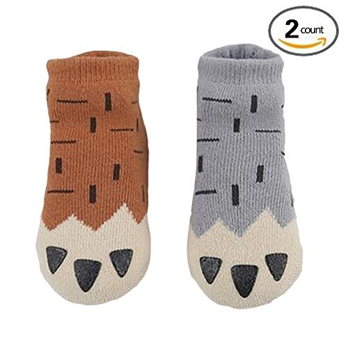 julvie滑り止め厚冬ソックス2ペアfor Baby 0 – 4yrs爪付き印刷 US サイズ: S