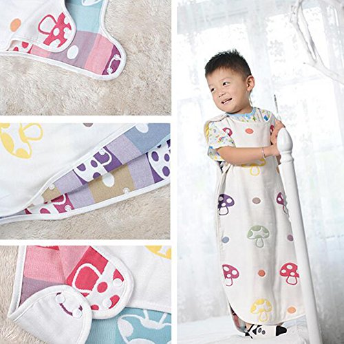 Julvie 6重ガーゼ ベビー スリーパー パジャマ 寝袋 オーガニックコットン 出産祝いに 柔らかい キノコ M 40*60