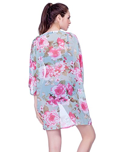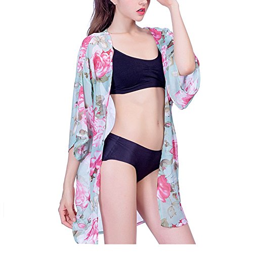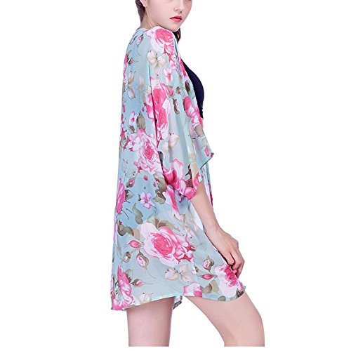 レディース花柄シフォンレース7分袖カーディガンゆったり薄手UVカットアウター冷房対策夏 (グリーン)