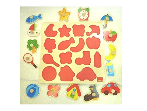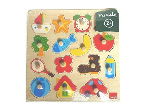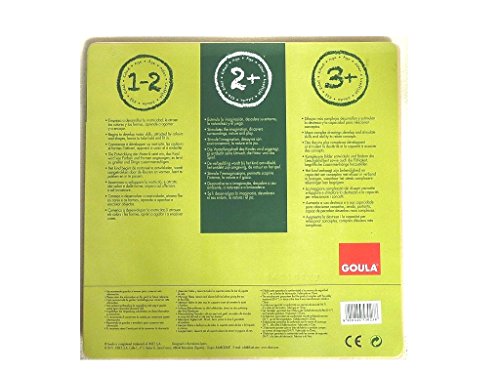 This brightly coloured wooden jigsaw puzzle with 15 lift-out pieces is an ideal 'First' puzzle for very young children and is probably most suitable for children aged 2 years and above, although slightly older children will enjoy them if they are new to puzzles. Jigsaw puzzles are a great way to help your child develop spatial awareness, problem solving, shape recognition and minor-motor co-ordination skills. Simple peg puzzles are a great way for them to start on their journey.The Silhouette themed puzzle has 15 recognisable images that include a ball, house, car, pencil, boot, umbrella, tree and many more. Behind each lift-out piece is a silhouette image i.e. the outside puzzle piece of the blue ball will only be able to match the cut-out shape of the same blue ball on the wooden puzzle board. This encourages your child to compare the puzzle piece with the board and see that they match. With the cut out shape to guide them, your child will learn to match up the pieces to the correct space they then learn to manipulate the piece until it fits. This encourages dexterity and spatial awareness along with hand-eye coordination development - important skills to learn when you are growing up.The wooden base, shapes and handles make this puzzle a pleasure to handle and play with. Suitable for children aged 2 years and above. The puzzle board measures 28 x 28cm approximately. All our Goula products are designed and manufactured to the highest standards, using wood from plantations for sustainable use and non-toxic paints and lacquers. Wood is a biodegradable material in harmony with nature. Its texture, shape, volume and warmth make it suitable material for children of a young age.