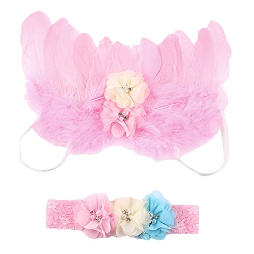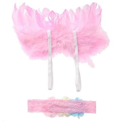 Junda ベビー キッズ ヘアバンド レース プレゼント 天使の翼 記念撮影 (ピンク)