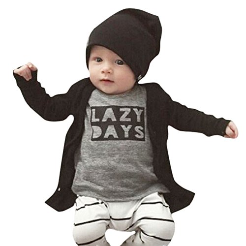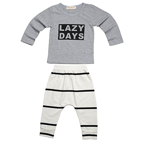 Junda 赤ちゃん 服 春 夏 普段着 綿 Tシャツ 半袖 ツーピース 出産祝い プレゼント (M, 長袖Tシャツ+パンツ/グレー)