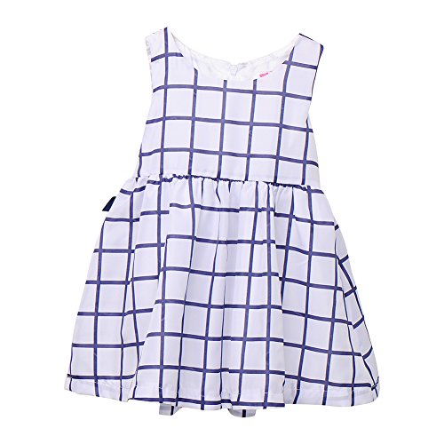 Junda ベビー用品 赤ちゃん 服 夏 おでかけ ワンピース ミニドレス 格子縞 お花柄 (格子縞, C)