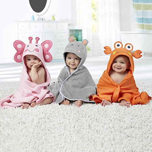 Each hooded character towel measures 30 x 30;Soft cotton terry towel features a cute 3D butterfly face hood;Keeps baby dry, snug and warm from bath time to bedtime;An essential for any baby registry and a perfect baby shower gift;Machine wash and dry for easy care