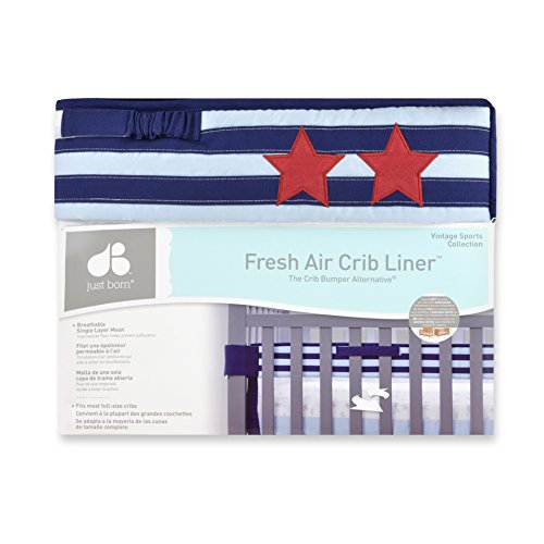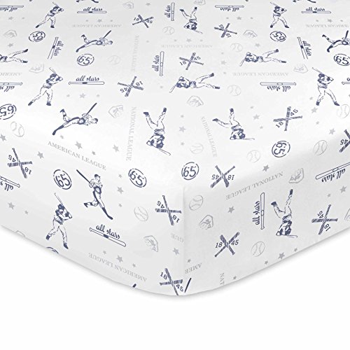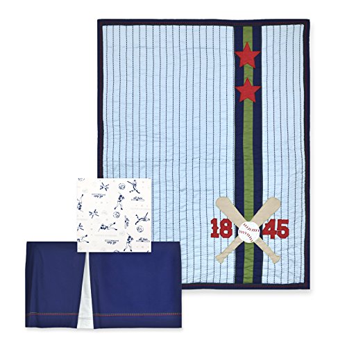 Create your nursery with this 3-piece crib bedding set, which includes a fitted crib sheet, crib skirt and comforter, Crib bedding set features traditional colors, stars and stripes pulling inspiration from our sports heritage, 100 percent cotton Vintage Sports crib sheet fits all standard crib mattresses with fully encased elastic edge providing snug and secure fit on baby's mattress, Complete your nursery and give it a polished look with our vintage sports-inspired crib skirt and comforter, Dimensions: Quilt: 36" x 45"; Dust Ruffle: 28" x 52" with a 16" drop; Crib sheet: 28" x 52"