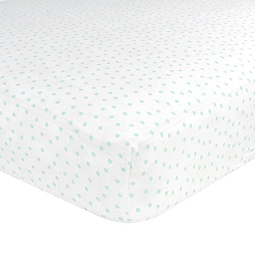 Measures 28 x 52 and fits all standard crib mattresses;Fully encased elastic edge provides snug and secure fit on mattress;Contemporary teal dot pattern;Coordinates with crib bedding sets and other accessories in Just Born bedding collections;Machine wash and dry for easy care