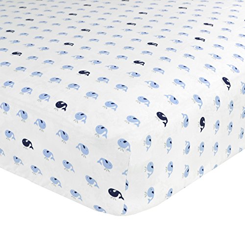 Measures 28 x 52 and fits all standard crib mattresses;Fully encased elastic edge provides snug and secure fit on mattress;Classic yet contemporary whale print;Coordinates with crib bedding sets and other accessories in Just Born bedding collections;Machine wash and dry for easy care