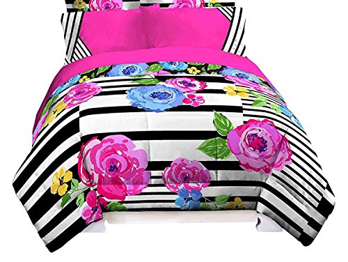 Just For Kids Floral/Stripe Pink/Yellow/Blue/Black Twin 3 Piece Sheet Set