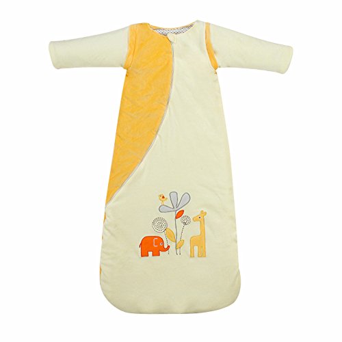 ベビースリーパー 冬 寝袋 キッズシュラフ 長袖 袖が取り外す可 赤ちゃん おくるみ ブランケット 暖かい 柔らかい肌触り【Justgreat】 (90cm, イェロー)