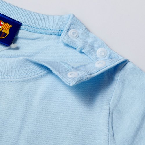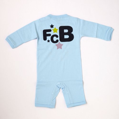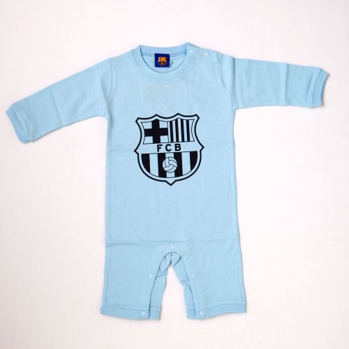 バルセロナのクラブオフィシャルグッズで、クラブクレストがプリントされた長袖ロンパースです。素材はコットン100%。サイズは80cm。左肩に2個、股部分に5個のスナップボタン付きです。