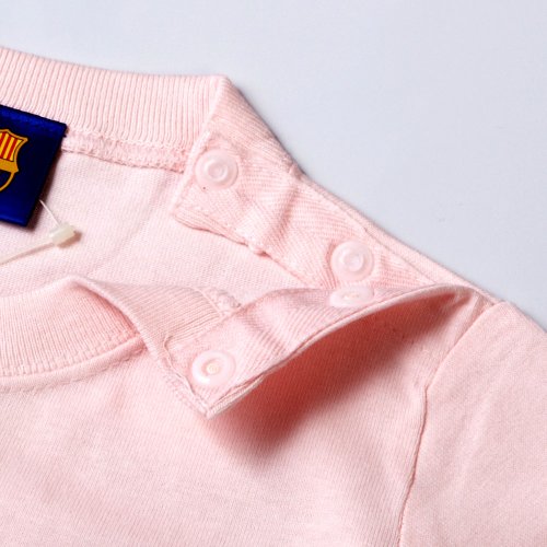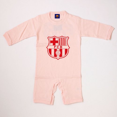 バルセロナのクラブオフィシャルグッズで、クラブクレストがプリントされた長袖ロンパースです。素材はコットン100%。サイズは80cm。左肩に2個、股部分に5個のスナップボタン付きです。