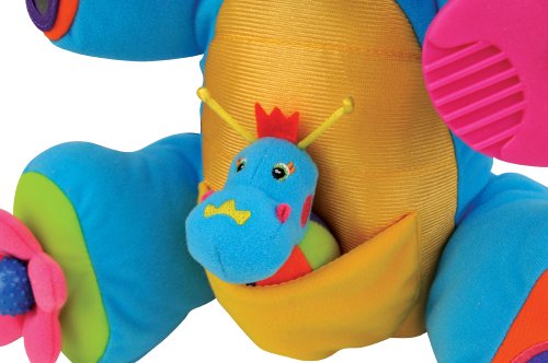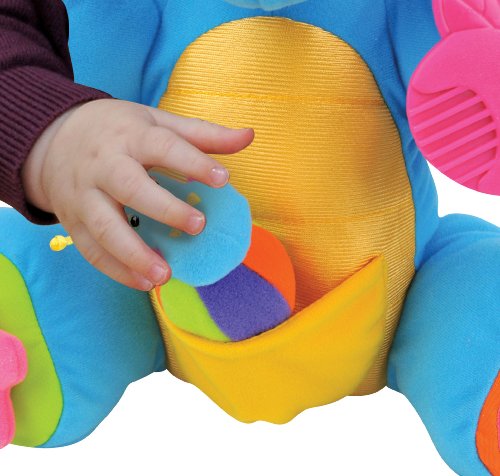 外国ならではのとてもカラフルな色遣いの人形の登場です。おこさまが抱っこして持ち運びやすいサイズになっております。さらに体のパーツにはいろいろな仕掛けが仕組まれてるよ。