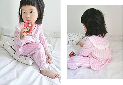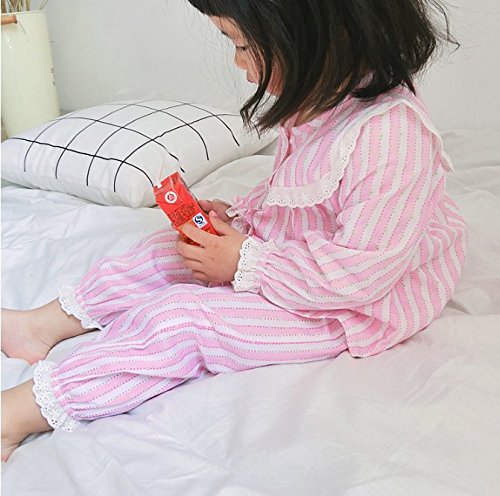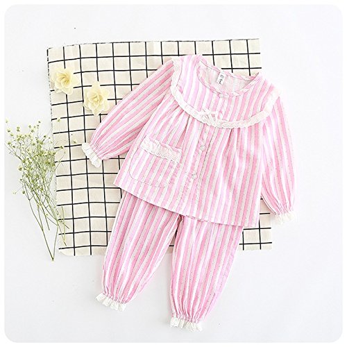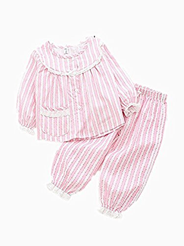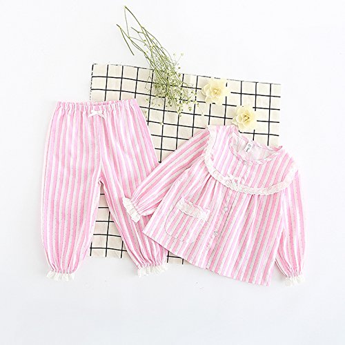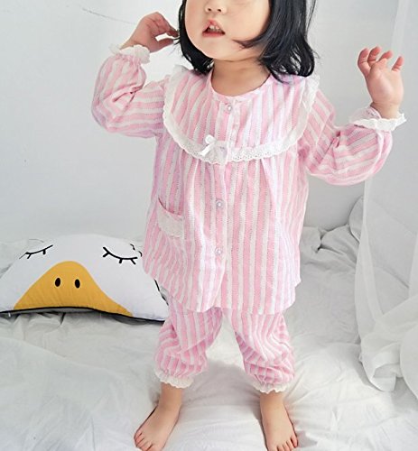 K+Mee 子供服 女の子 キッズ パジャマ 春秋冬 長袖 前開き ボタン レースパジャマ 花柄 ルームウェア ナイトウェア 部屋着 寝間着 オシャレ かわいい 上下セット 2点セット (ピンク 120cm)