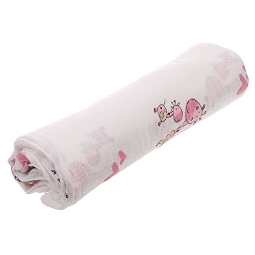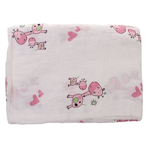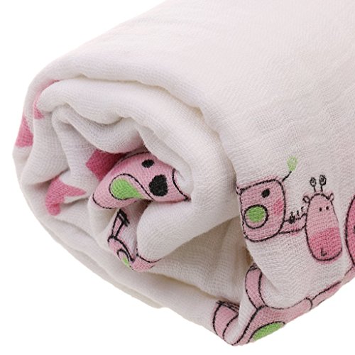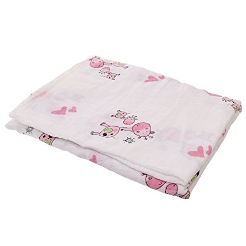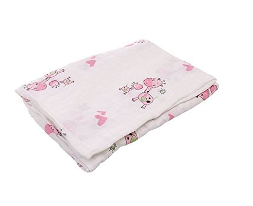 K+Mee ベビー 新生児 赤ちゃん ブランケット おくるみ モスリン 綿 コットン バスタオル 毛布 動物柄 いろいろパタン ラップ ソフト 柔らかい かわいい 暖かい ベビー用品 子供 男の子 女の子 タオル 保育園準備に (ピンクキリン )