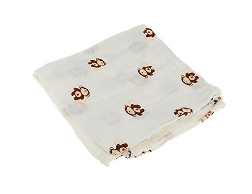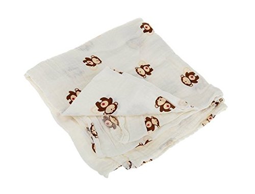 K+Mee ベビー 新生児 赤ちゃん ブランケット おくるみ モスリン 綿 コットン バスタオル 毛布 動物柄 いろいろパタン ラップ ソフト 柔らかい かわいい 暖かい ベビー用品 子供 男の子 女の子 タオル 保育園準備に (モンキー)