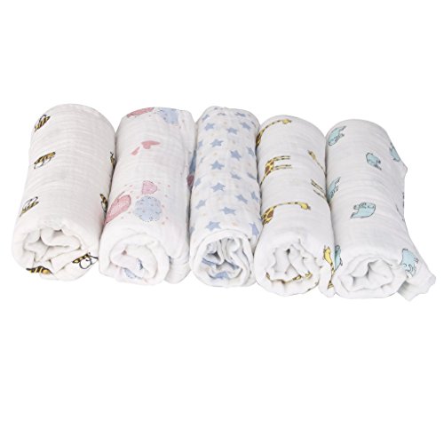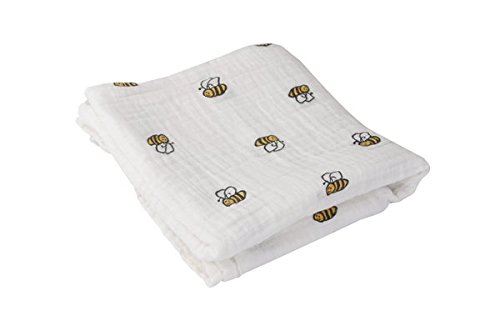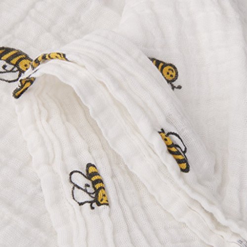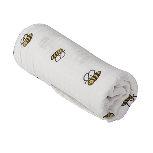 K+Mee ベビー 新生児 赤ちゃん ブランケット おくるみ モスリン 綿 コットン バスタオル 毛布 動物柄 いろいろパタン ラップ ソフト 柔らかい かわいい 暖かい ベビー用品 子供 男の子 女の子 タオル 保育園準備に (ミツバチ)