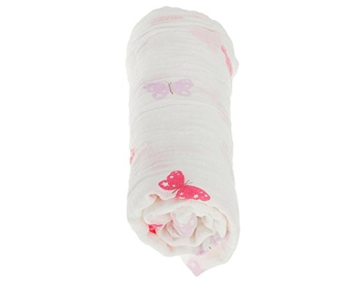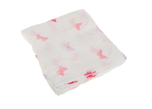 K+Mee ベビー 新生児 赤ちゃん ブランケット おくるみ モスリン 綿 コットン バスタオル 毛布 動物柄 いろいろパタン ラップ ソフト 柔らかい かわいい 暖かい ベビー用品 子供 男の子 女の子 タオル 保育園準備に (蝶)