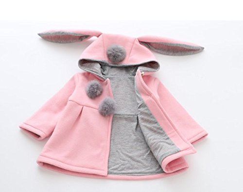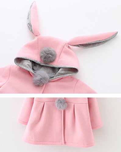 K+Mee 子供服 ベビー服 赤ちゃん キッズ 女の子 コート 長袖 厚手 防寒 秋冬 アウター ジャケット ウサギの耳 キュート ポンポン付き フード付き 通園 通学 プレゼント 暖かい おしゃれ かわいい (ピンク 80cm)
