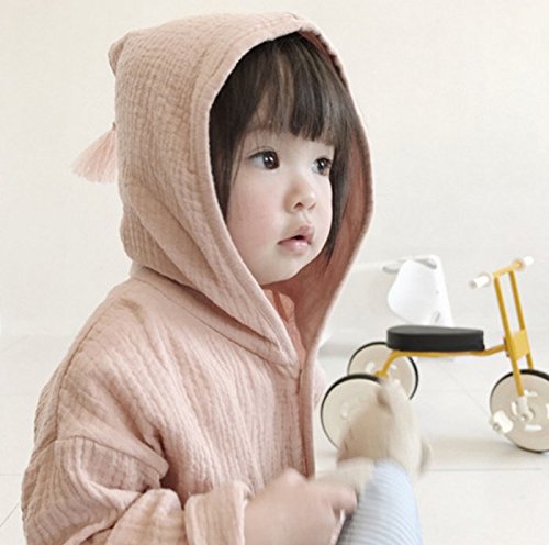 K+Mee 子供服 女の子 男の子 男女兼用 カーディガン コート ガーゼ 長袖 タッセル付き パーカー 春秋冬 シンプル かわいい おしゃれ 上質 カジュアル 通学 出かけ お祝い ギフト ファッション (ピンク 90cm)
