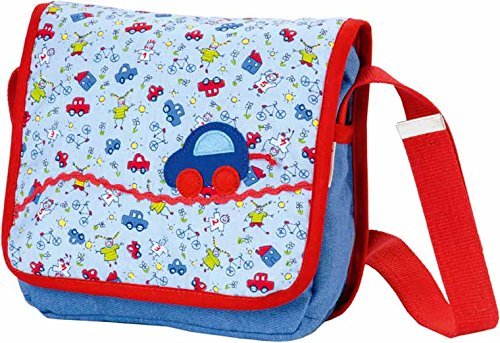 Beautiful nursery bag made of printed cotton fabric for strong guys with inner pocket and name tag;With hook-and-loop fastener;Length of the shoulder belt can be adjusted;In the pocket is a lunchbox with K?the Kruse print;Includes key chain and lunch box