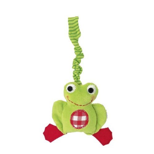 The Kathe Kruse Stuffed Rattle, Frog Chopin makes?funny chirping noises when shaken, sure to attract baby's attention. Kathe Kruse has been designing toys for babies and toddlers for generations, and knows that learning to grab and squeeze toys is essential for your baby's healthy development. This soft stuffed toy helps your baby begin to develop motor skills in a playful and easy way. Take it along in the car seat or diaper bag to entertain baby on the go. The brightly colored Stuffed Frog Chopin is made of cotton fabric and filled with polyester fibers. Measures 4''. Suitable for children of 3 months and older. To clean the toy just wipe it with a moist cloth. Imported from Germany.