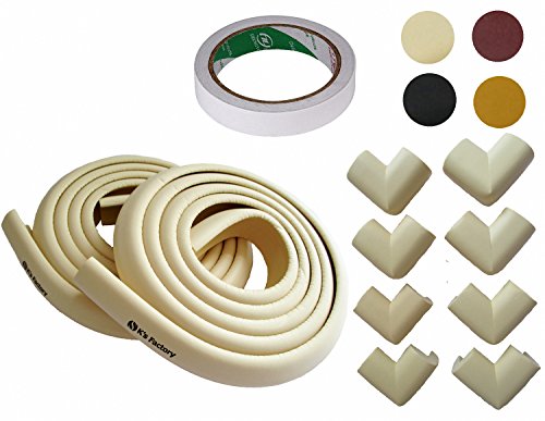 【 K’s Factory 】 コーナークッション パーフェクトセット ! ① コーナークッション 2個 (2m×2) ② コーナーガード 8個 ③ はがせる両面テープ ( 20mm × 17m ) 薄手 強力 柱 や テーブル 階段 等 家具 の 角 を 保護 赤ちゃん や ご年配 の方の ケガ防止 安心 安全 セーフティー グッズ ベッドガード ドアガード 両面テープも付属 (薄手タイプ, 3 アイボリー)