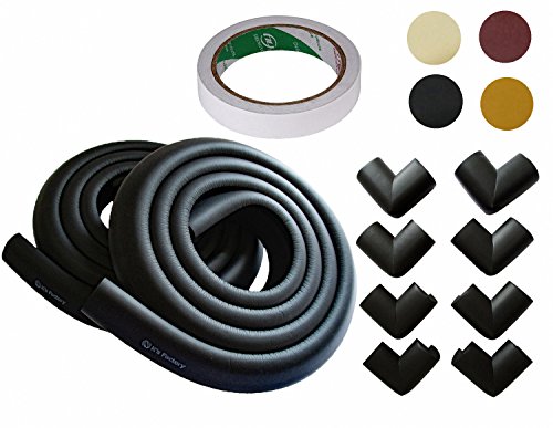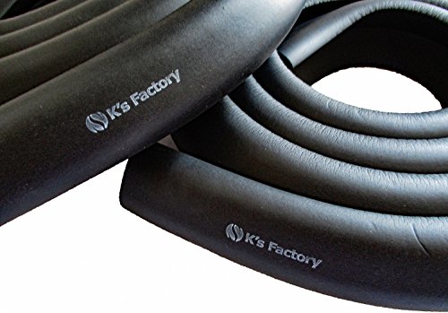【 K’s Factory 】 コーナークッション パーフェクトセット ! ① コーナークッション 2個 (2m×2) ② コーナーガード 8個 ③ はがせる両面テープ ( 20mm × 17m ) 薄手 強力 柱 や テーブル 階段 等 家具 の 角 を 保護 赤ちゃん や ご年配 の方の ケガ防止 安心 安全 セーフティー グッズ ベッドガード ドアガード 両面テープも付属 (厚手タイプ, 4 ブラック)