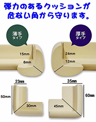 - 【タイプ別用途】 <厚手タイプ>~厚みがあるため、クッション性に非常に優れ、衝突によるケガから優しく守ります。小さなお子様のいるご家庭で活躍します。 <薄手タイプ>~厚手タイプよりも薄いため目立たちにくく、お部屋のインテリになじみます。またコーナー部分取付時の加工がしやすくなっています。