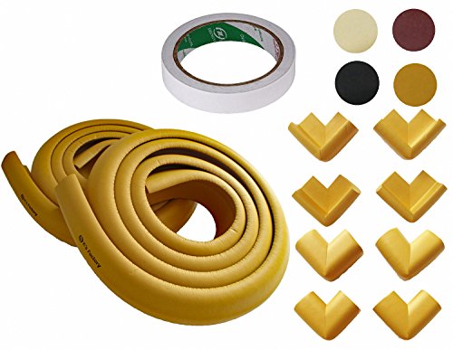 【 K’s Factory 】 コーナークッション パーフェクトセット ! ① コーナークッション 2個 (2m×2) ② コーナーガード 8個 ③ はがせる両面テープ ( 20mm × 17m ) 薄手 強力 柱 や テーブル 階段 等 家具 の 角 を 保護 赤ちゃん や ご年配 の方の ケガ防止 安心 安全 セーフティー グッズ ベッドガード ドアガード 両面テープも付属 (厚手タイプ, 2 ライトブラウン)