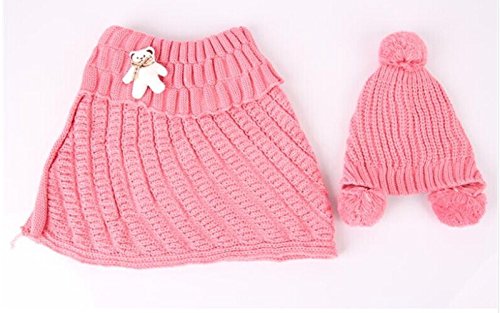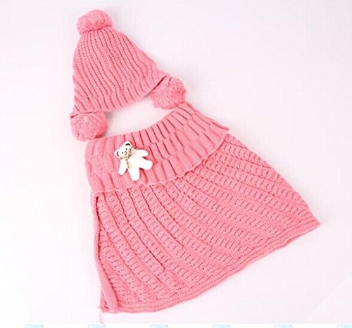 【Kan Sei+】帽子&くまマスコット&ケープ セット ポンチョ よく動く子供でも肩や耳を冷やさないから温かさ持続 ニット帽子 /毛糸/手編みなので赤ちゃんの頭にも安心 (ピンク)